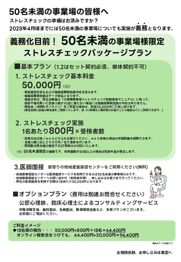 【ストレスチェック】50名未満の事業者様向けパッケージプランリリースのお知らせ(最新)